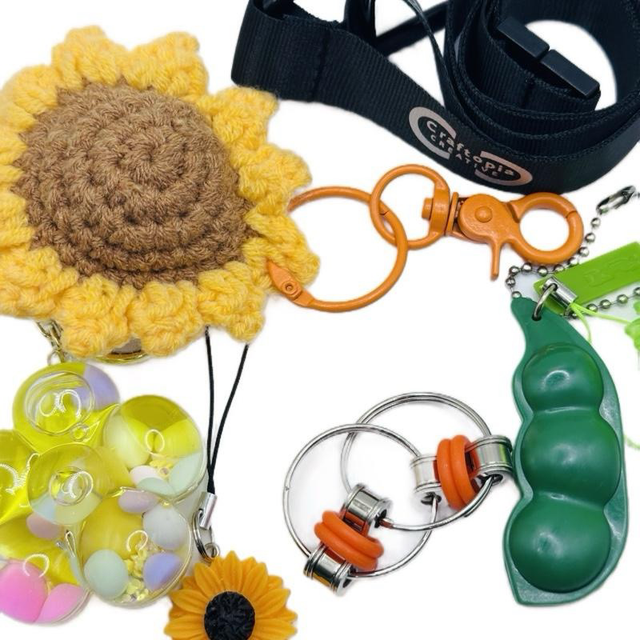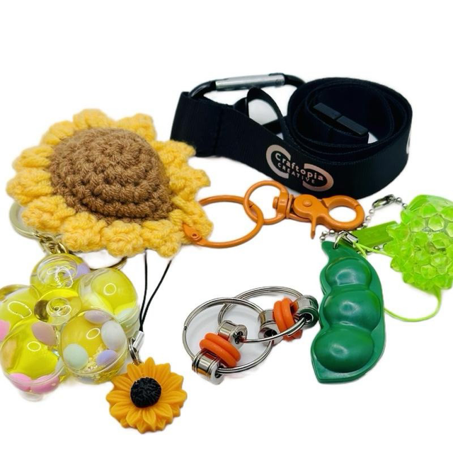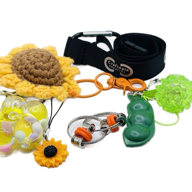 Sunflower sensory lanyard with various fidgets.